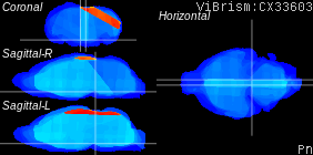 The ViBrism cross section images (whole brain mode: beta version) were provided by the ViBrism team. A full 3-D model of the expression is available at their ViBrism site.